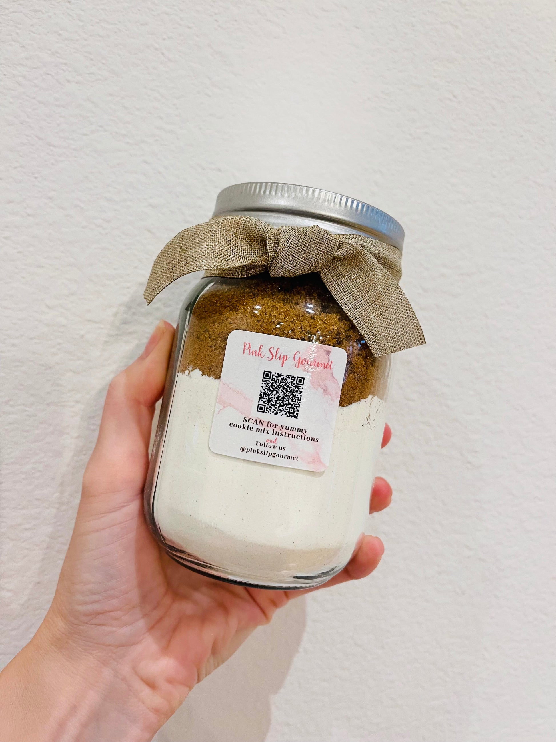 This mix will make about one dozen cookies and comes in a reusable 16 oz glass jar.